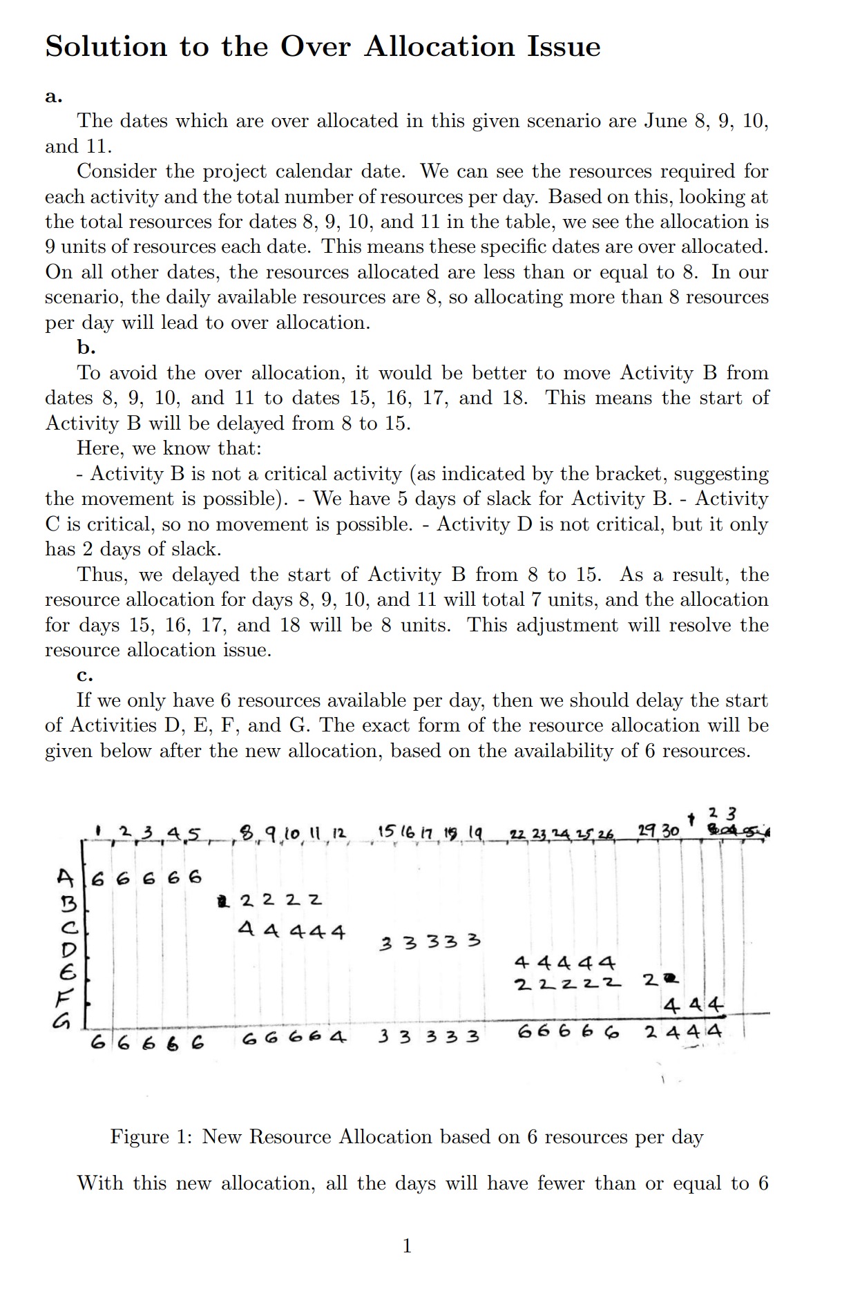 Consider the partial resource-loading chart shown below. Suppose that you can commit a maximum of 8 resource hours per day; a. Choose the dates on which project resources are overallocated? b. How should the resource-loading table be manipulated to correct for this overallocation? c. Now suppose that the maximum number of resource hours per day you can commit is reduced to six. How would you reconfigure and construct the resource-loading table to adjust for this number? What would be the new project completion date
