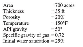 The Wildcat Reservoir was discovered in 1980. This reservoir had an initial reservoir pressure of 3,000 psia, and laboratory data indicated a bubble-point pressure of 2,500 psi. The following additional data are available: