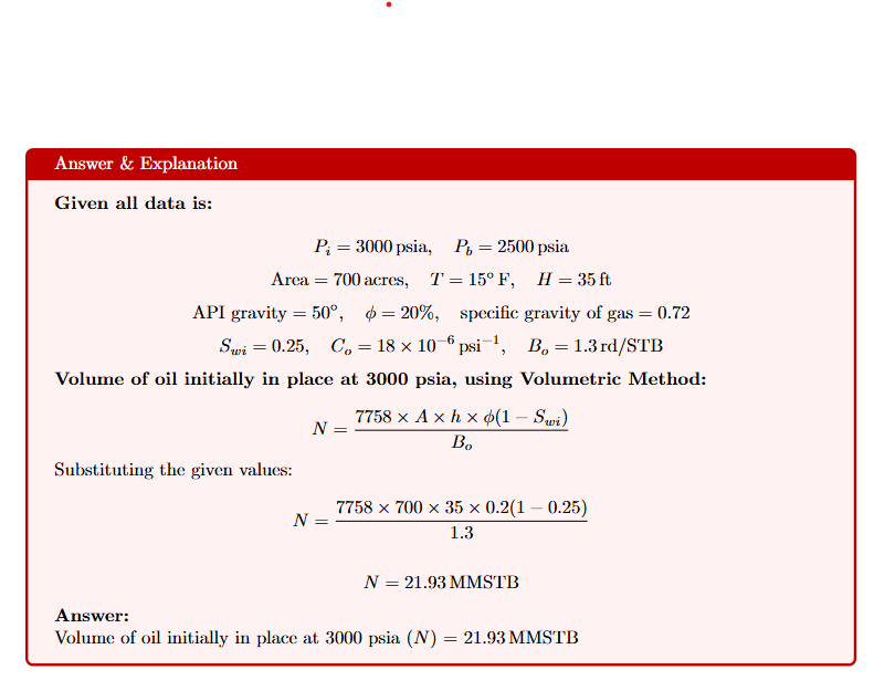 The Wildcat Reservoir was discovered in 1980. This reservoir had an initial reservoir pressure of 3,000 psia, and laboratory data indicated a bubble-point pressure of 2,500 psi. The following additional data are available: